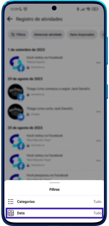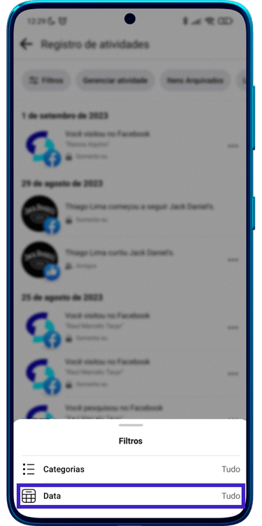 O registro de suas atividades no Facebook serve como prova de sua utilização da rede social nos períodos relativos aos vazamento.